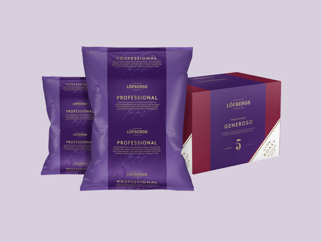 Professional Generoso er en kraftig kaffe med sirupstoner og smaker av mørke bær og sjokolade. Produktet finnes i flere forskjellige vekter og malingsgrader.